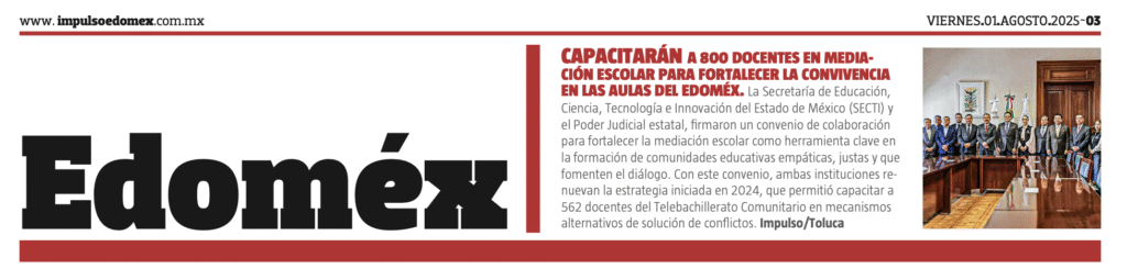 - https://8columnas.com.mx/estado-de-mexico/poder-judicial-y-gem-impulsan-formacion-de-mediadores-escolares/
