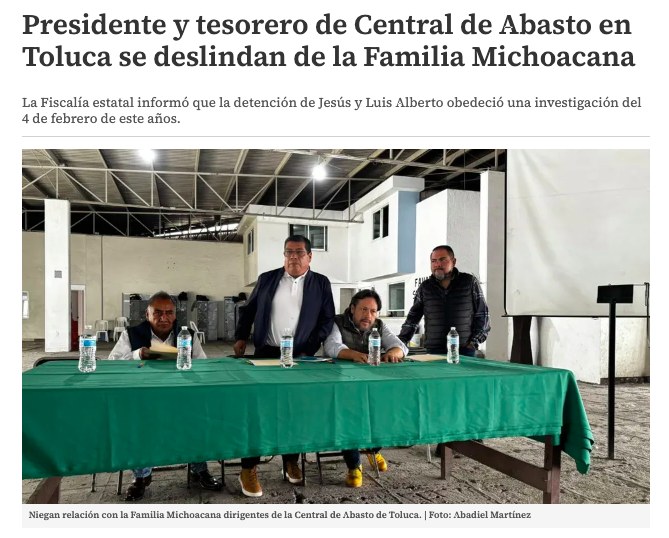 Presidente y tesorero de Central de Abasto en Toluca se deslindan de la Familia Michoacana