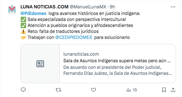“Se inicia en el Poder Judicial una transformación democratizadora, en donde se voltea a ver a las clases más desprotegidas, a los sectores históricamente invisibilidades, históricamente desprotegidos, como lo son las etnias y los grupos de afrodescendientes. Esta sala reivindica el valor y la importancia de juzgar con perspectiva de interculturalidad.”