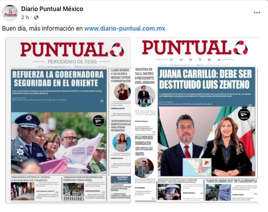 - https://www.facebook.com/DiarioPuntualMx/posts/pfbid032HynCyHRS9T9k9k3fxYxuqtVqVGthgKQTZPycS3RbbTnRfq6MLKMVWfXXe2VVcjbl