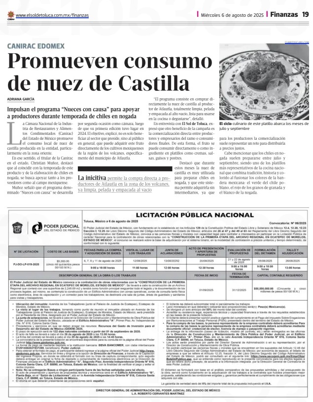 El Poder Judicial del Estado de México, con fundamento en lo establecido en los Artículos 129 de la Constitución Política del Estado Libre y Soberano de México 12.4, 12.20, 12.23 fracción I; 12.25 del Libro Décimo Segundo del Código Administrativo del Estado de México; artículos del 26 al 47 y del 49 al 63 del Reglamento del Libro Décimo Segundo del Código Administrativo del Estado de México, convoca a las personas físicas y morales con capacidad legal para contratar e interesados en participar en la Licitación Pública de carácter Nacional para la contratación de obras relacionadas con la “CONSTRUCCIÓN DE LA PRIMERA ETAPA DEL ARCHIVO REGIONAL EN ECATEPEC DE MORELOS, ESTADO DE MÉXICO”; el concurso se realizará sobre la base de adjudicación por el sistema binario, en la modalidad de contratación a precios unitarios y tiempo determinado, de conformidad con lo siguiente: