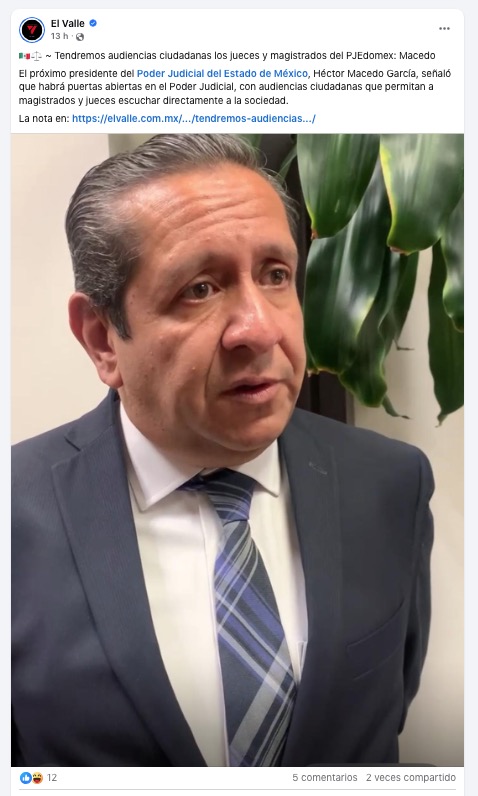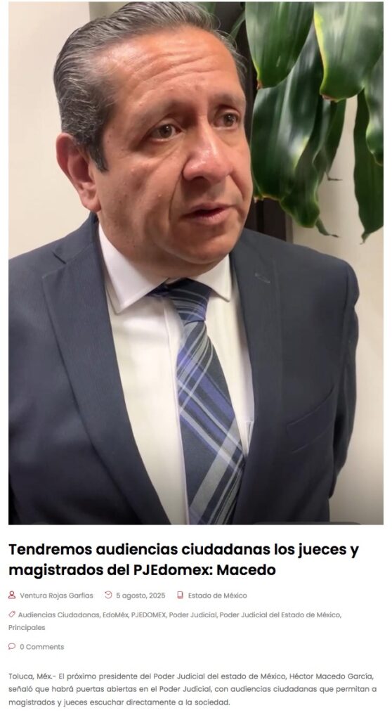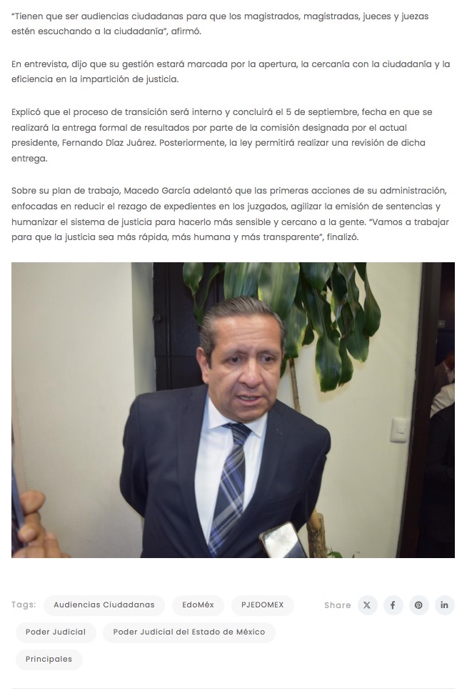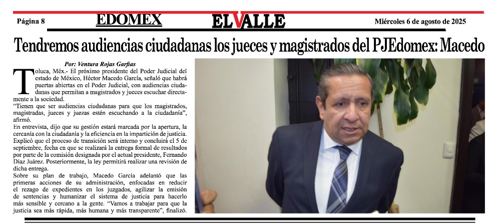 - https://elvalle.com.mx/2025/08/05/tendremos-audiencias-ciudadanas-los-jueces-y-magistrados-del-pjedomex-macedo/
