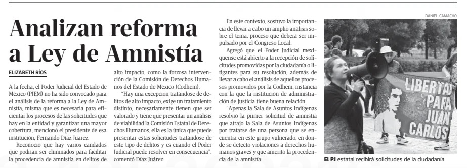 PJEdomex ofrece colaboración para reformar Ley de Amnistía