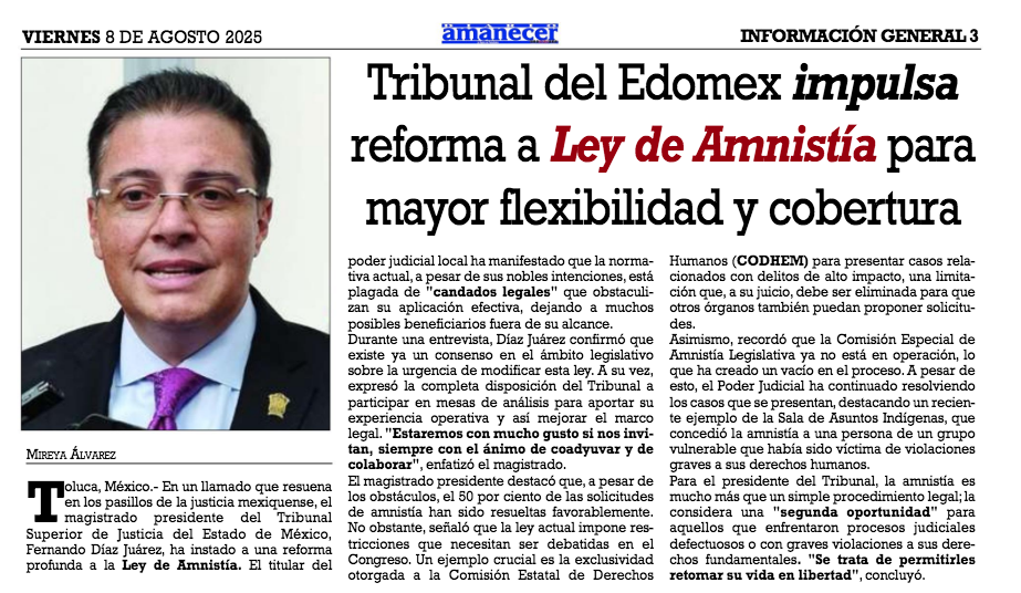 • https://diarioamanecer.com.mx/tribunal-del-edomex-impulsa-reforma-a-la-ley-de-amnistia-para-mayor-flexibilidad-y-cobertura/
