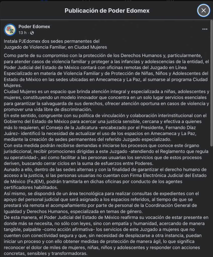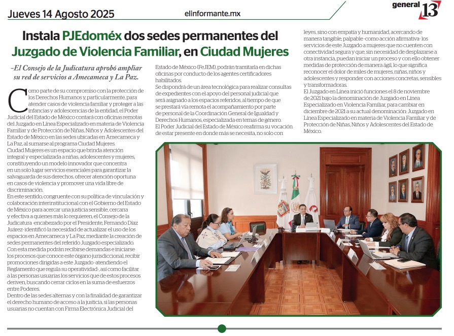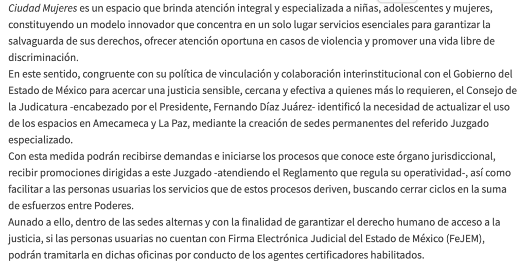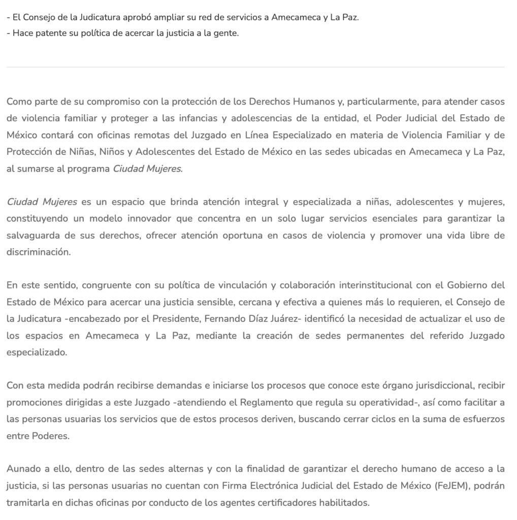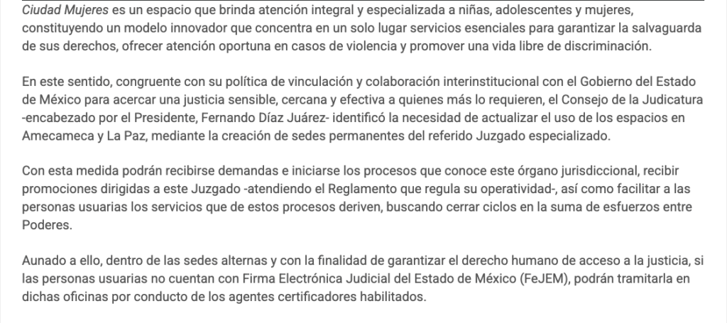 - https://cadenapolitica.com/2025/08/13/instala-pjedomex-dos-sedes-permanentes-del-juzgado-de-violencia-familiar-en-ciudad-mujeres/