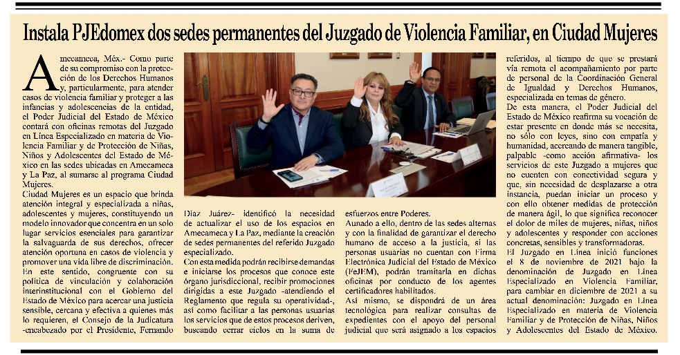 - https://aulamexiquense.com/instala-pjedomex-dos-sedes-permanentes-del-juzgado-de-violencia-familiar-en-ciudad-mujeres/