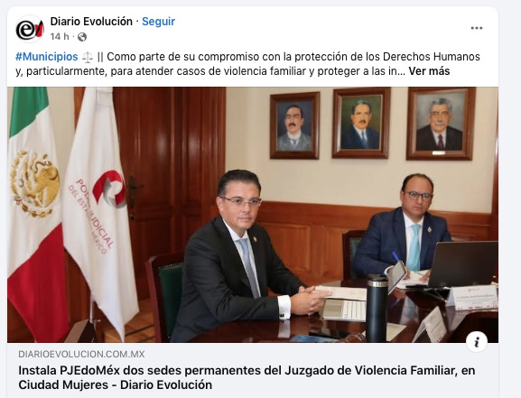 - https://www.diarioevolucion.com.mx/instala-pjedomex-dos-sedes-permanentes-del-juzgado-de-violencia-familiar-en-ciudad-mujeres/?fbclid=IwY2xjawMK4HVleHRuA2FlbQIxMQBicmlkETFkTzRPVmI3Wkt0OTBHNW9VAR6imHoJAJwKU7O9XYzUr8-jIXmFiJI-jFlyZlLfYNqUWnLawxJrRJ585fB1Ww_aem_lCV_D_ef3vMkoFgqmzPYNw