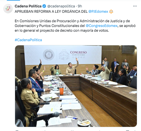 En Comisiones Unidas de Procuración y Administración de Justicia y de Gobernación y Puntos Constitucionales del Congreso del Estado de México se aprobó en lo general el proyecto de decreto con mayoría de votos.