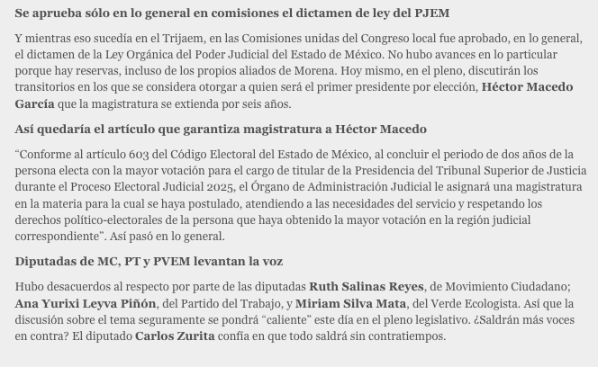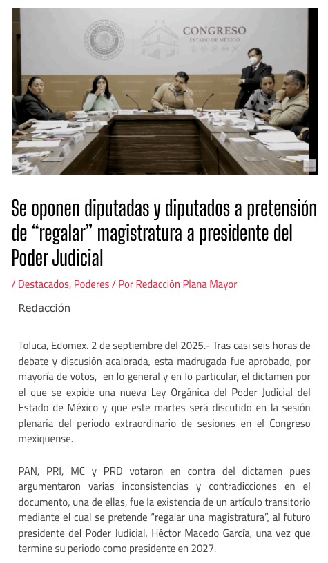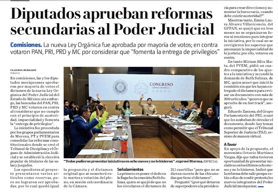 - https://www.trespm.mx/edomex/polemica-en-el-congreso-por-ley-organica-del-poder-judicial-mexiquense