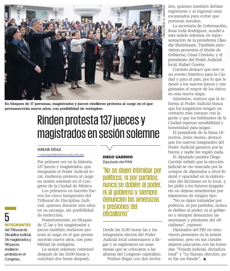 Por primera vez en la historia, 137 jueces y magistrados, que integrarán el Poder Judicial local, rindieron protesta al cargo en sesión solemne en el Congreso de la Ciudad de México.