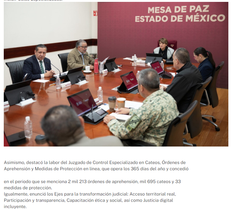 - https://lineasecreta.com/se-suma-poder-judicial-a-la-mesa-de-paz-estado-de-mexico-para-fortalecer-la-coordinacion-en-materia-de-seguridad/