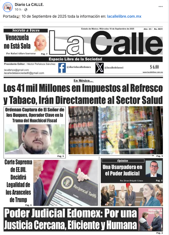 - https://www.facebook.com/diariolacalledomex/posts/pfbid0kTm94yo9kpCt6SAs4TCaiJBzuW58KPik6Q9iNt5pgTqFPnA7qv6PgnkGq1Ugvwiil