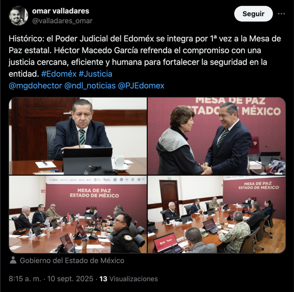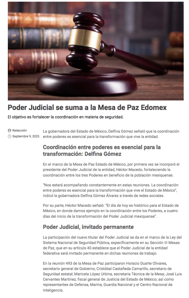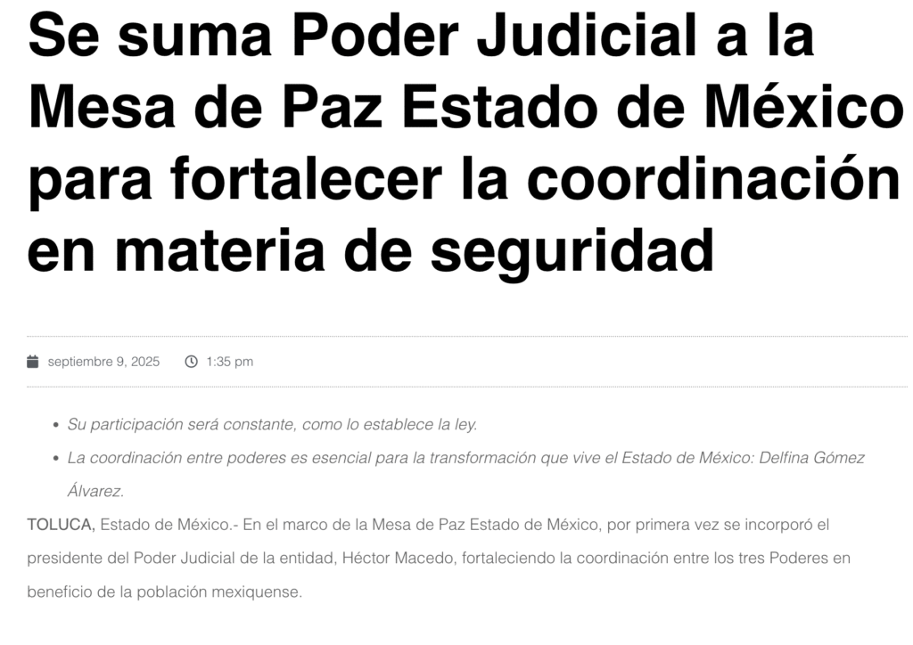 - https://cadenapolitica.com/2025/09/09/se-suma-poder-judicial-a-la-mesa-de-paz-estado-de-mexico-para-fortalecer-la-coordinacion-en-materia-de-seguridad/