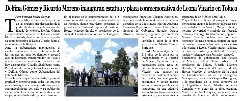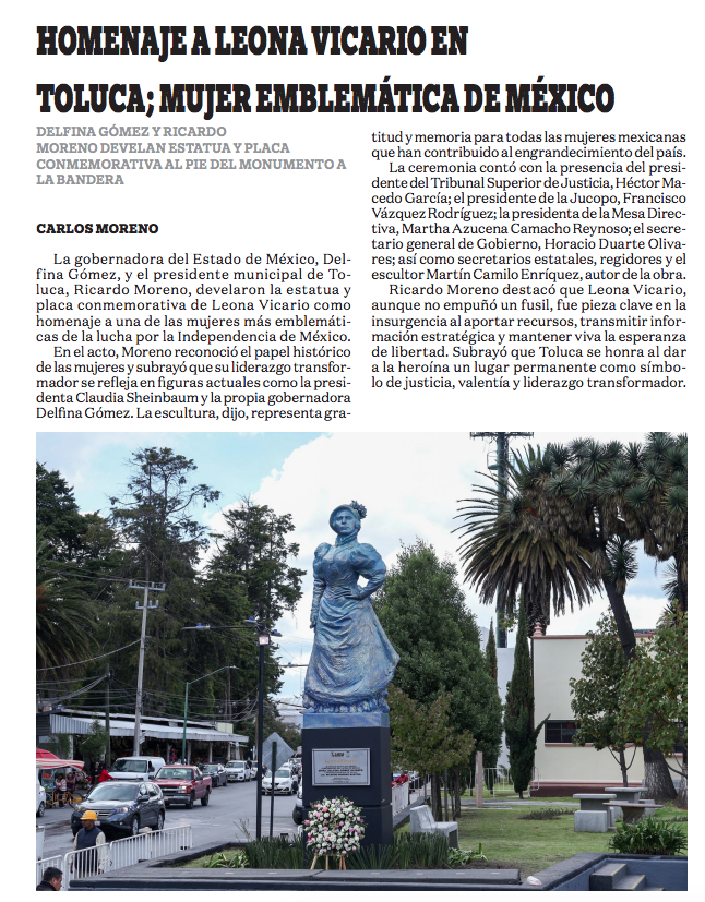 • https://elvalle.com.mx/2025/09/16/delfina-gomez-y-ricardo-moreno-inauguran-estatua-y-placa-conmemorativa-de-leona-vicario-en-toluca/