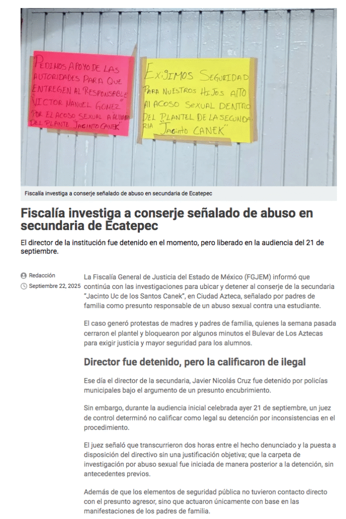 - https://lajornadaestadodemexico.com/fiscalia-investiga-a-conserje-senalado-de-abuso-en-secundaria-de-ecatepec/