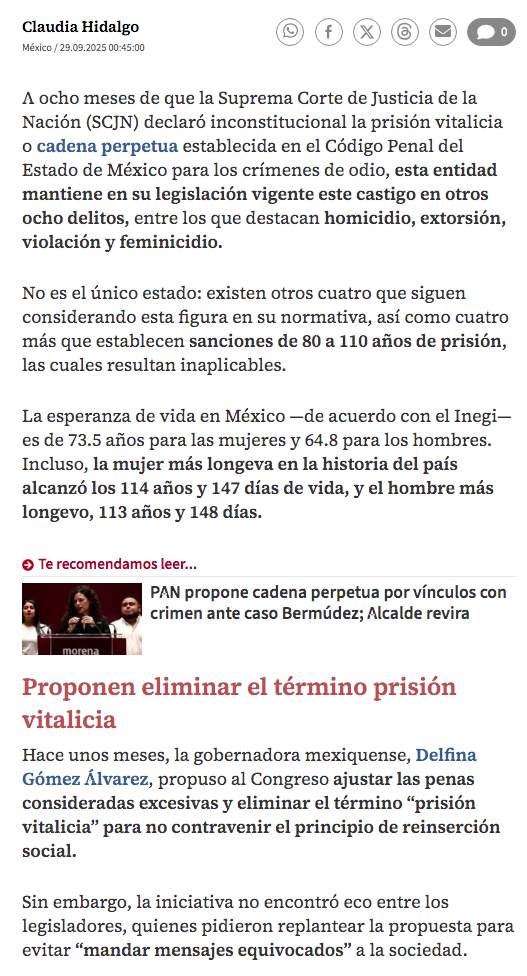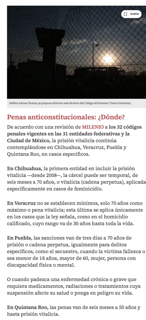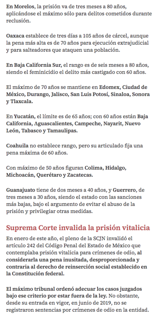 • https://www.milenio.com/policia/cadena-perpetua-mexico-corte-la-declaro-inconstitucional-pero-sigue