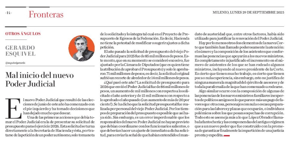 - https://www.milenio.com/opinion/gerardo-esquivel/otros-angulos/mal-inicio-del-nuevo-poder-judicial