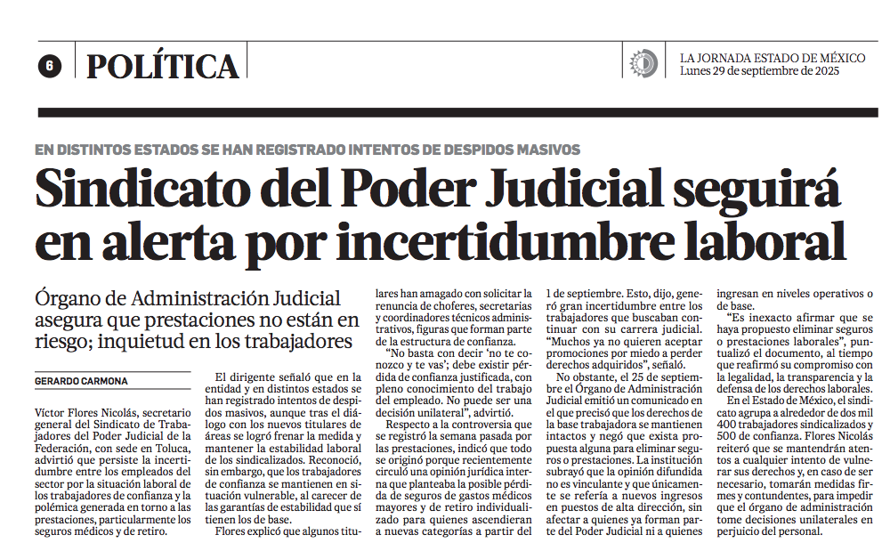 • https://lajornadaestadodemexico.com/sindicato-del-poder-judicial-en-toluca-seguira-en-alerta-por-incertidumbre-laboral/