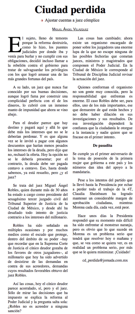 - https://www.jornada.com.mx/noticia/2025/09/30/columnas/ajustar-cuentas-a-juez-complice-ciudad-perdida