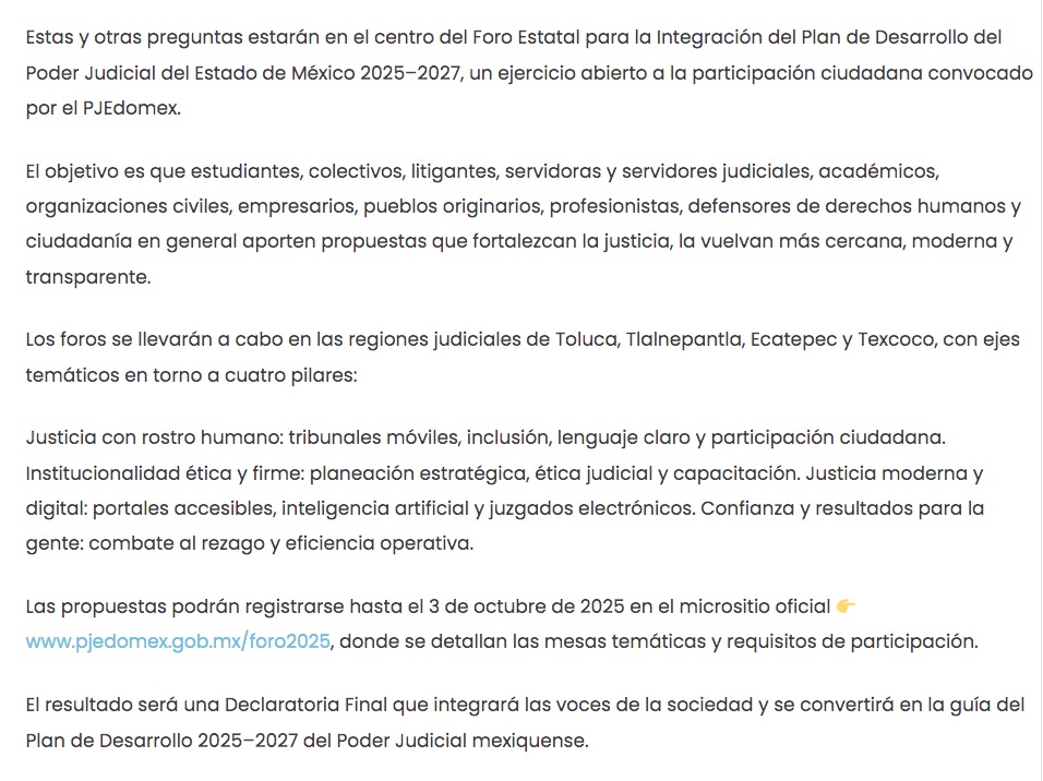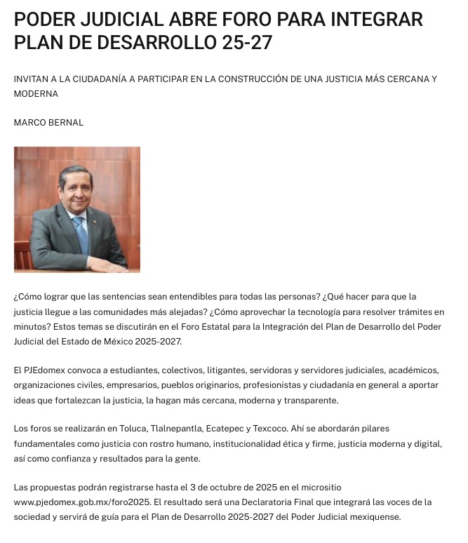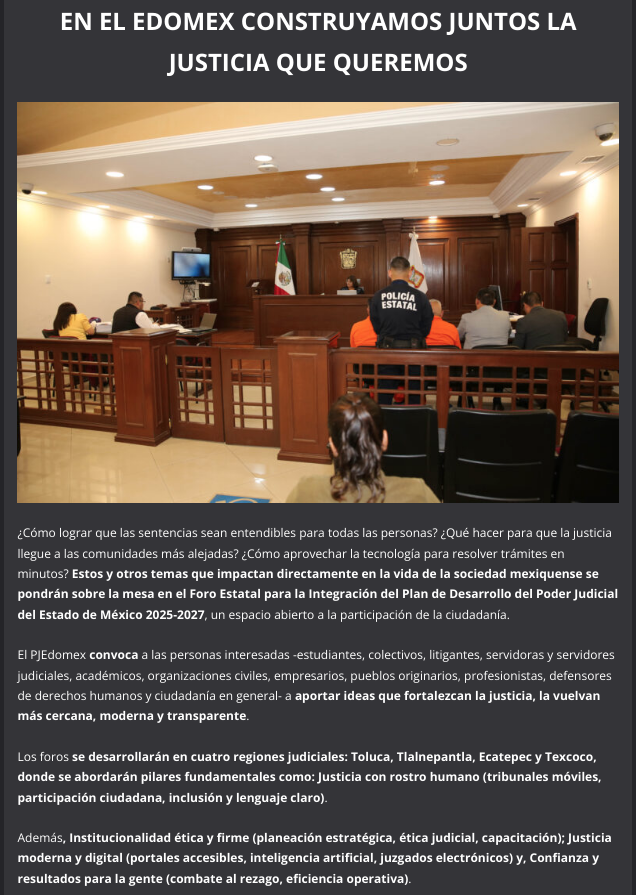 - https://www.capitaledomex.com.mx/local/el-poder-judicial-del-edomex-convoca-a-foros-ciudadanos-para-integrar-su-plan-de-desarrollo-2025-2027/amp/