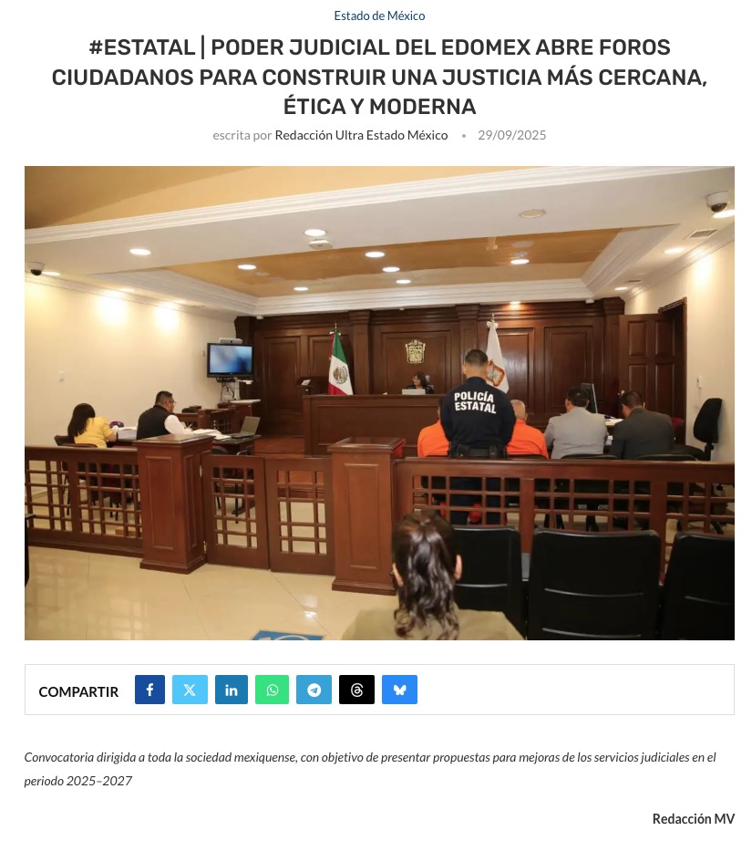 - https://ultranoticias.com.mx/estatal-poder-judicial-del-edomex-abre-foros-ciudadanos-para-construir-una-justicia-mas-cercana-etica-y-moderna/