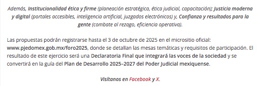 - https://primeroeditores.com.mx/informacion-general/convoco-poder-judicial-a-foros-para-plan-de-justicia-2025-2027/