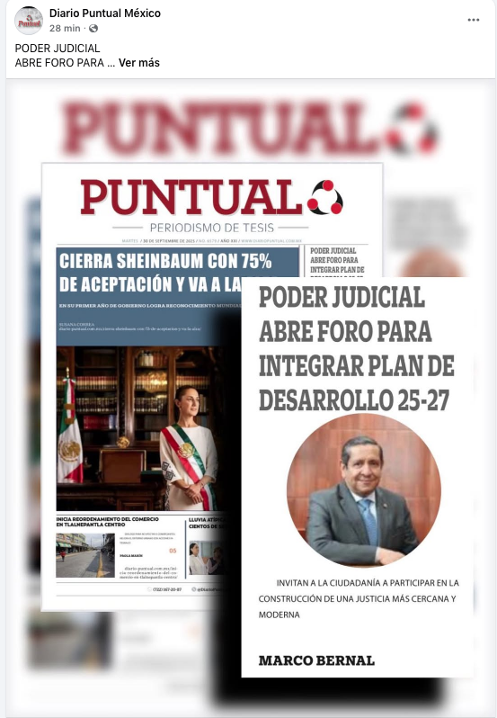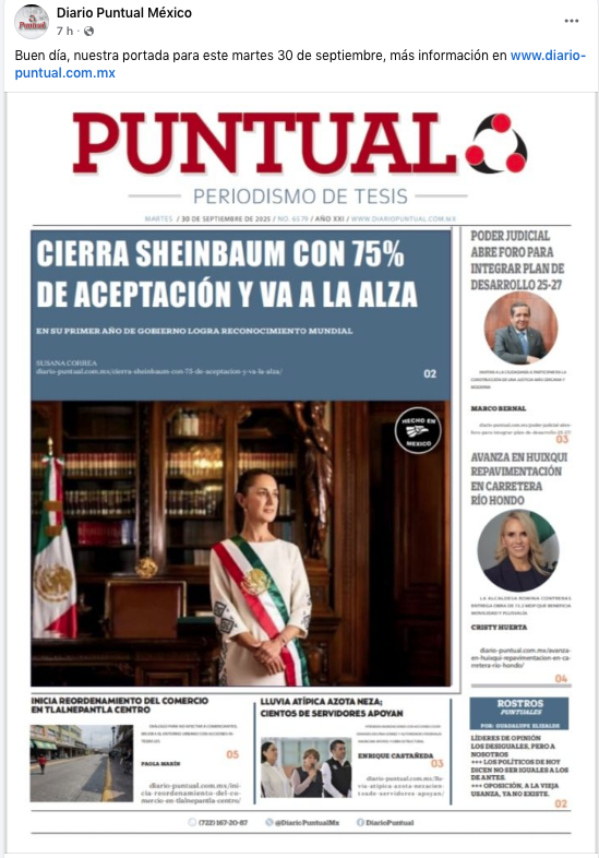- https://www.facebook.com/DiarioPuntualMx/posts/pfbid02Ue5ZCrVR4YowKHb67G5FDkfPSBNxZtwdKHXy8cQXtYq8xLthCmog3dMVsYfKY3A4l