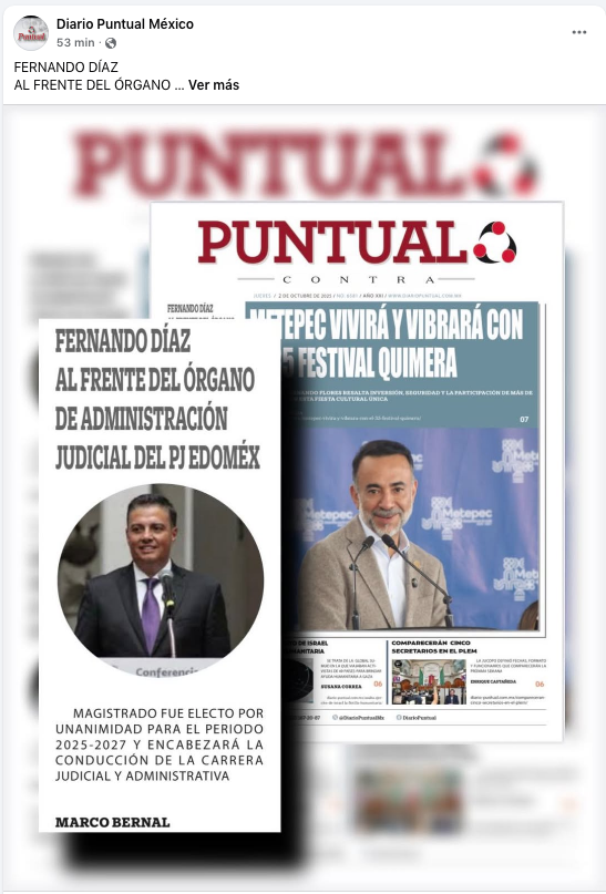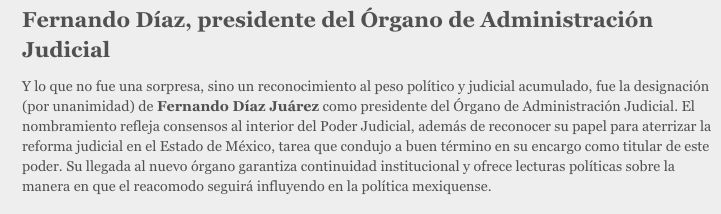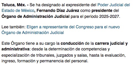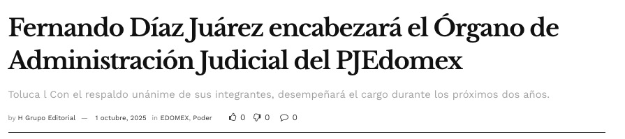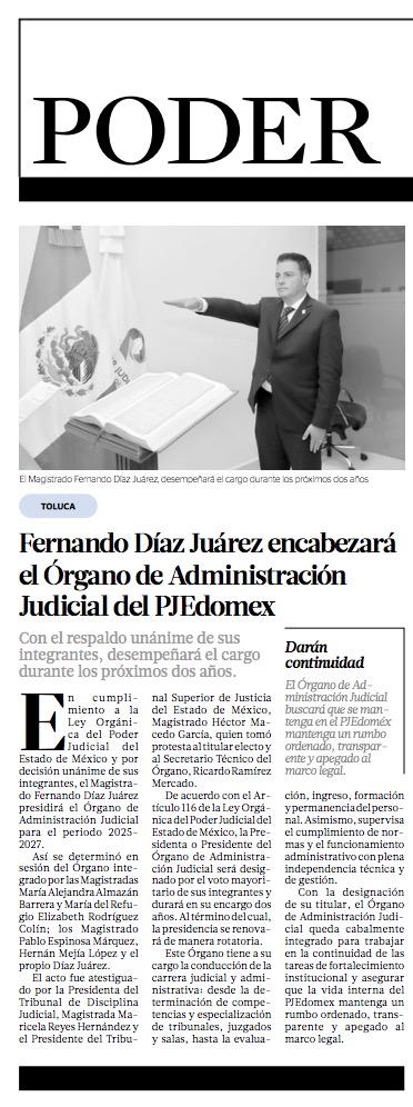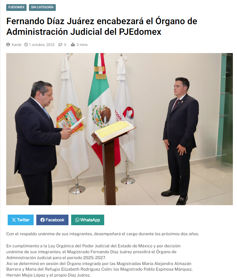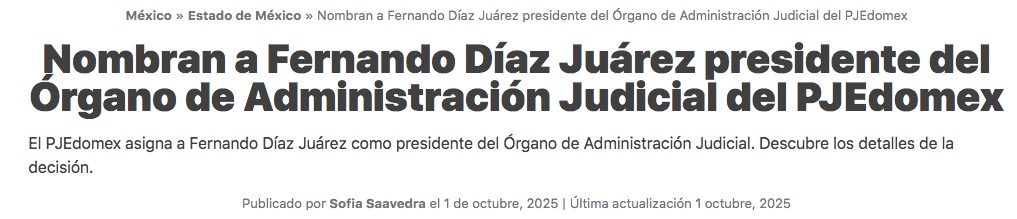 - https://www.xponencial.mx/2025/10/01/fernando-diaz-juarez-encabezara-el-organo-de-administracion-judicial-del-pjedomex/?fbclid=IwY2xjawNLUflleHRuA2FlbQIxMQBicmlkETFhRG5EOEJKbzIzMkNLRUliAR7sY93EBQk_1Leyi3vYTTrq1_kotrIrT-yc47CKHd02q7TsnHzirZacWPHgnQ_aem_F1TSFUXafa9f0cLQejdgdA#google_vignette