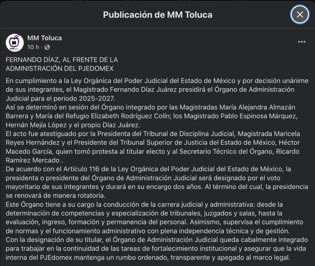 - https://digitalmex.mx/estado-de-mexico/story/61818/fernando-diaz-juarez-primer-presidente-organo-administracion-judicial-edomex