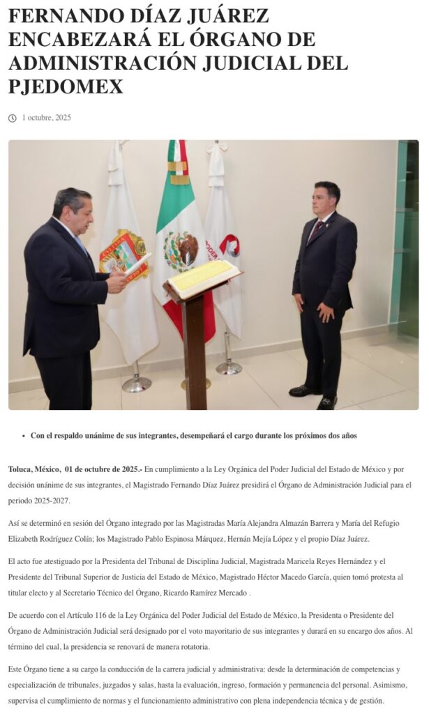 - https://seunonoticias.mx/2025/10/01/nombran-a-fernando-diaz-juarez-presidente-del-organo-de-administracion-judicial-del-pjedomex/