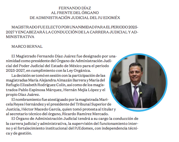 - https://heraldodemexico.com.mx/nacional/2025/10/1/fernando-diaz-juarez-encabezara-el-organo-de-administracion-del-pjedomex-734370.html