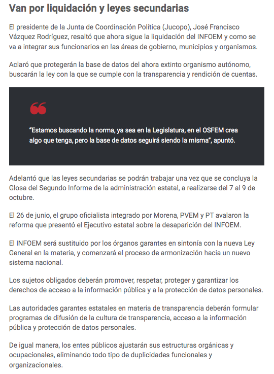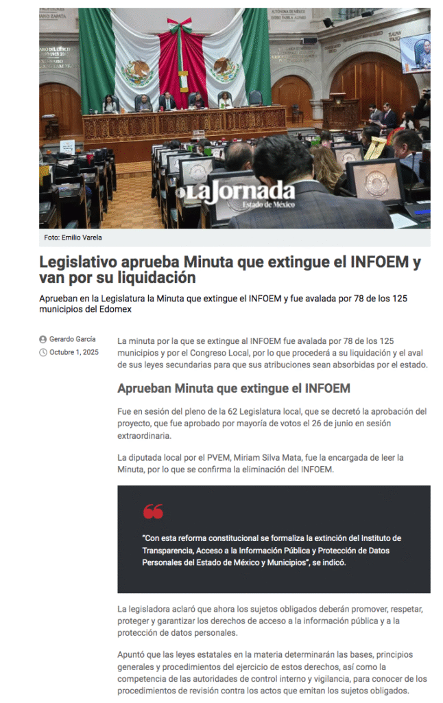 - https://lajornadaestadodemexico.com/legislativo-aprueba-minuta-que-extingue-el-infoem-y-van-por-su-liquidacion/