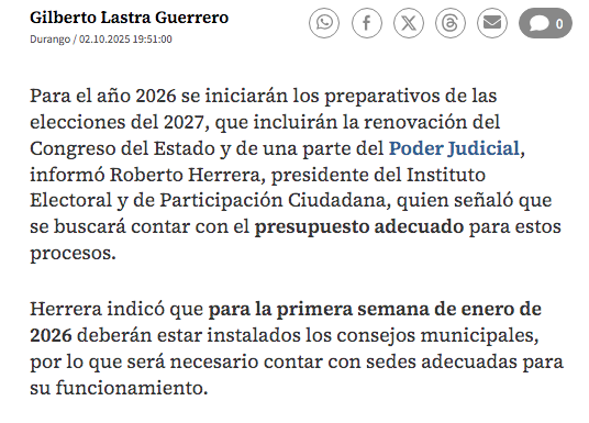 • https://www.milenio.com/estados/durango-preparara-elecciones-para-el-poder-judicial-el-proximo-ano