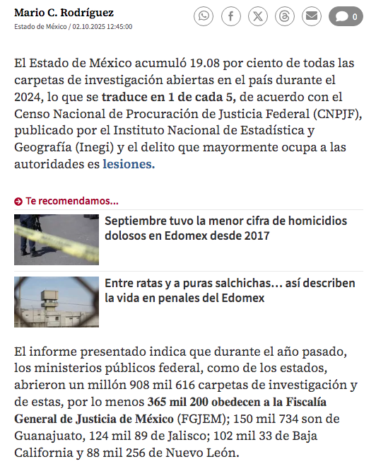 - https://www.milenio.com/policia/edomex-1-de-cada-5-carpetas-de-investigacion-del-pais-2024