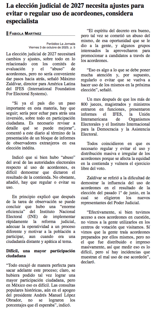 • https://www.jornada.com.mx/noticia/2025/10/02/politica/necesitara-eleccion-judicial-de-2027-cambios-y-ajustes-maximo-zaldivar