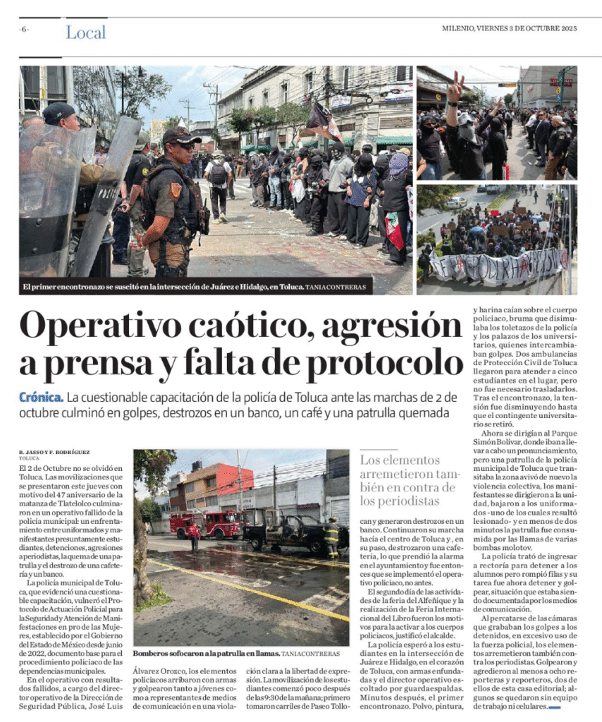 Toluca en 2 de octubre: grave violencia, atracos y agresión a la prensa