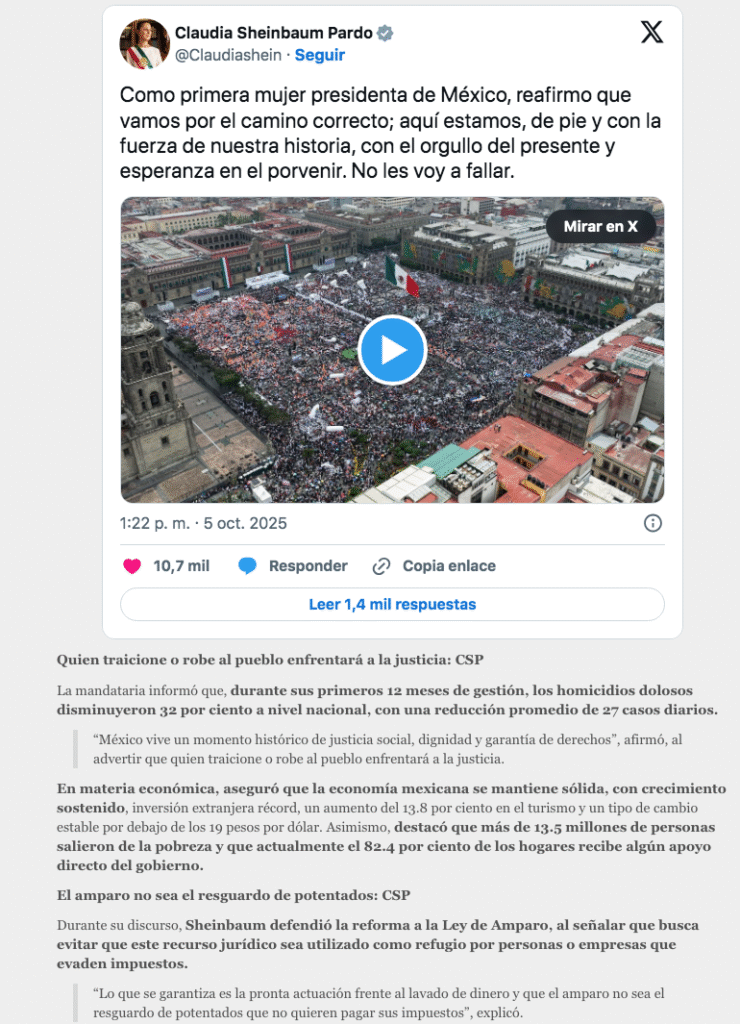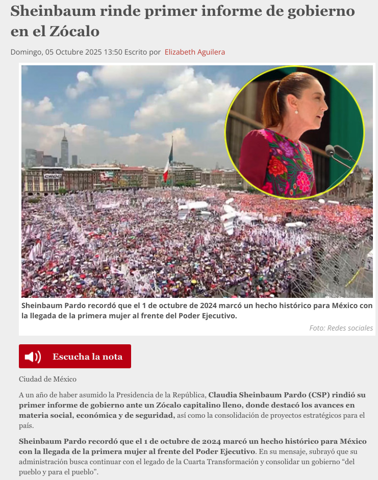- https://digitalmex.mx/nacional-e-internacional/story/61920/sheinbaum-rinde-primer-informe-gobierno-zocalo
