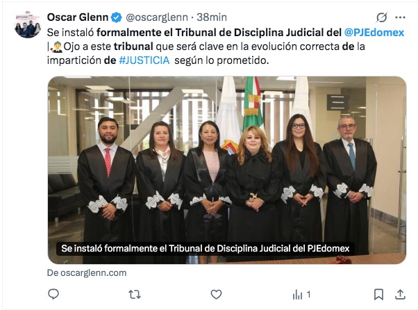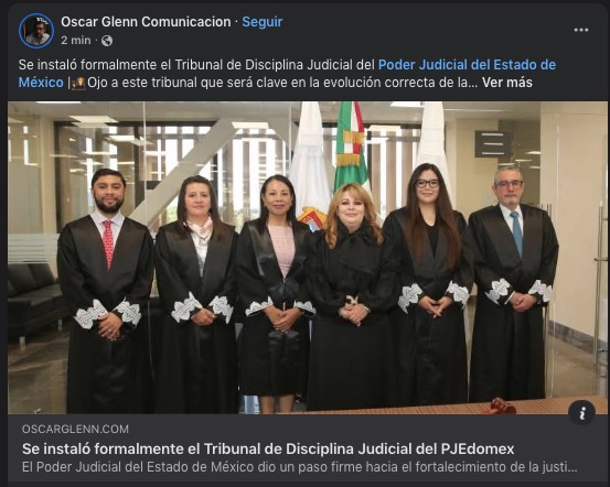 - https://oscarglenn.com/30864/Se-instal%C3%B3-formalmente-el-Tribunal-de-Disciplina-Judicial-del-PJEdomex?fbclid=IwY2xjawNR7M1leHRuA2FlbQIxMQBicmlkETFKWkp1UzV2VkNOa2FNR282AR7ZbjYgntWlD0QdR9zPpYllGMWcbfkilpF1NPxmIjbz2TB9_50t_42raH8K4A_aem_0ikvhl8MJ-d9se2ektYWVQ