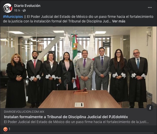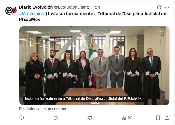 - https://www.diarioevolucion.com.mx/instalan-formalmente-a-tribunal-de-disciplina-judicial-del-pjedomex/?fbclid=IwY2xjawNR8YhleHRuA2FlbQIxMQBicmlkETFKWkp1UzV2VkNOa2FNR282AR5oNk2ZcCezcJQuhR7CPe9ZTAGNI5BXxan5iOtzhEXcwnGU4iakOSuxVyl0sw_aem_8IOjuXOB0O6Mt_ACqigpYw