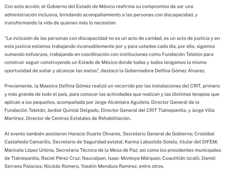 - https://lineasecreta.com/entrega-gobernadora-delfina-gomez-donativo-de-25-mdp-al-teleton/