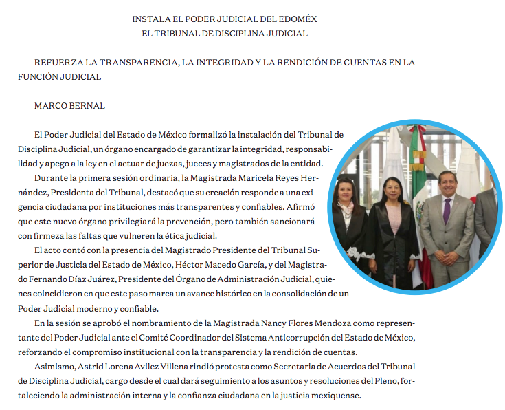 - https://informativomexiquense.com/edomex/el-poder-judicial-del-estado-de-mexico-instala-su-tribunal-de-disciplina-judicial