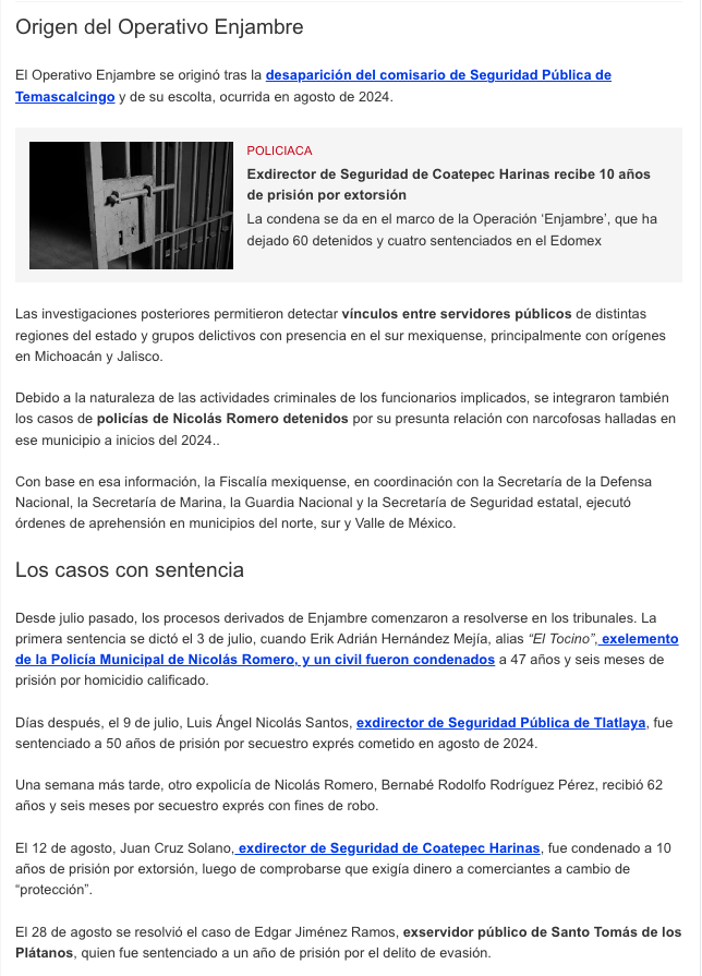 Operativo Enjambre: siete exfuncionarios del Edomex reciben sentencia por vínculos con el crimen