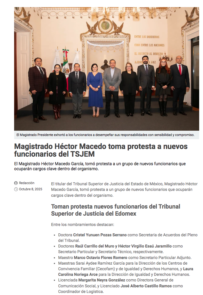 - https://diario-puntual.com.mx/hector-macedo-fortalece-equipo-directivo-del-poder-judicial-mexiquense/