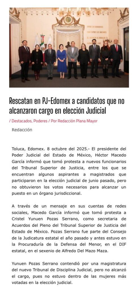 - https://www.planamayor.com.mx/rescatan-en-pj-edomex-a-candidatos-que-no-alcanzaron-cargo-en-eleccion-judicial/