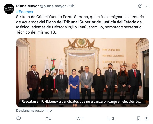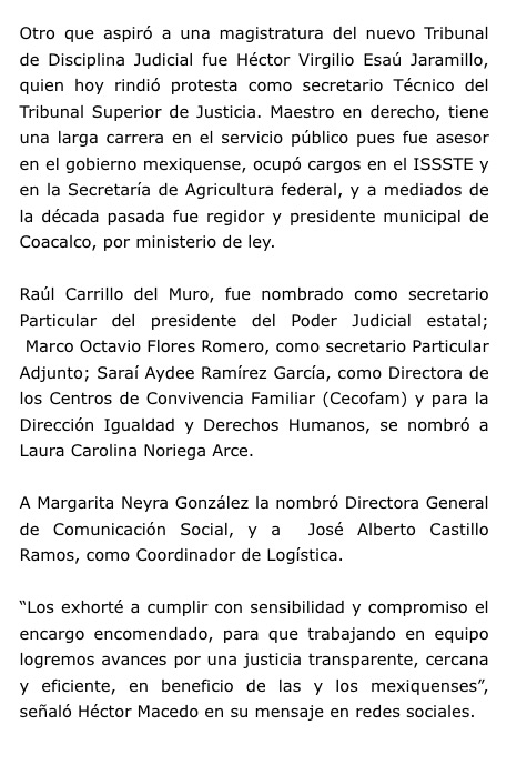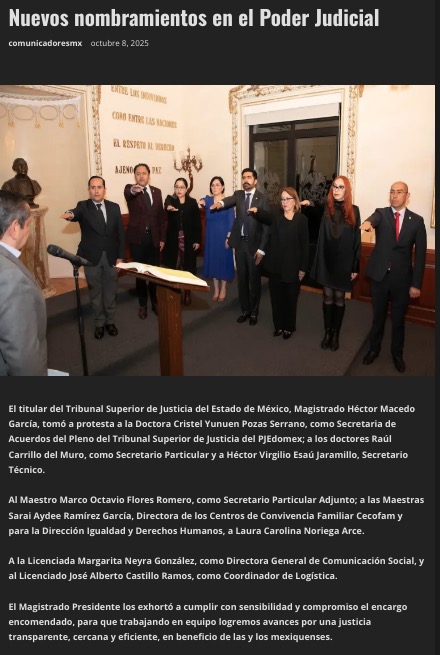- https://comunicacionxxi.com/nuevos-nombramientos-en-el-poder-judicial-del-estado-de-mexico/