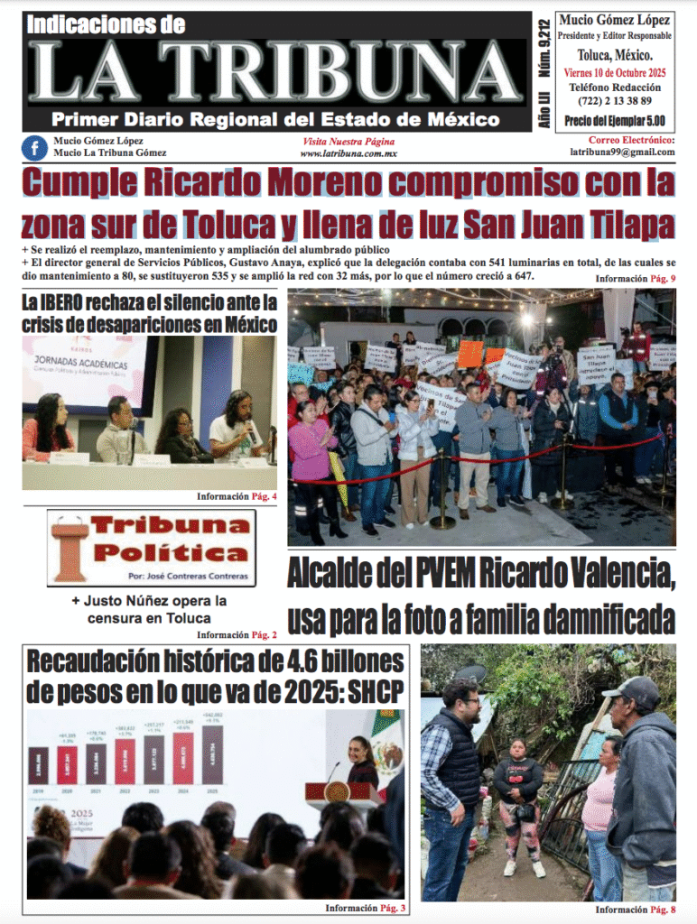 - https://www.facebook.com/LaTribunaEdoMex/posts/pfbid0iEFm2ndNTB1ZKGscmWvh45jJXLcizq9JsAG4W3jrvkkNdcWpVjyMmaEfvxbiNypKl