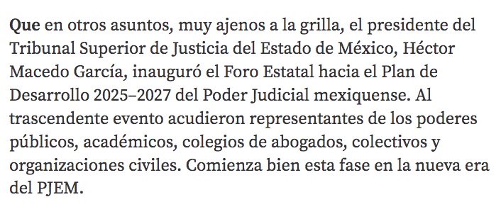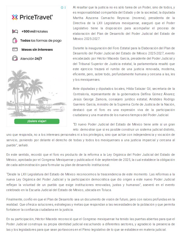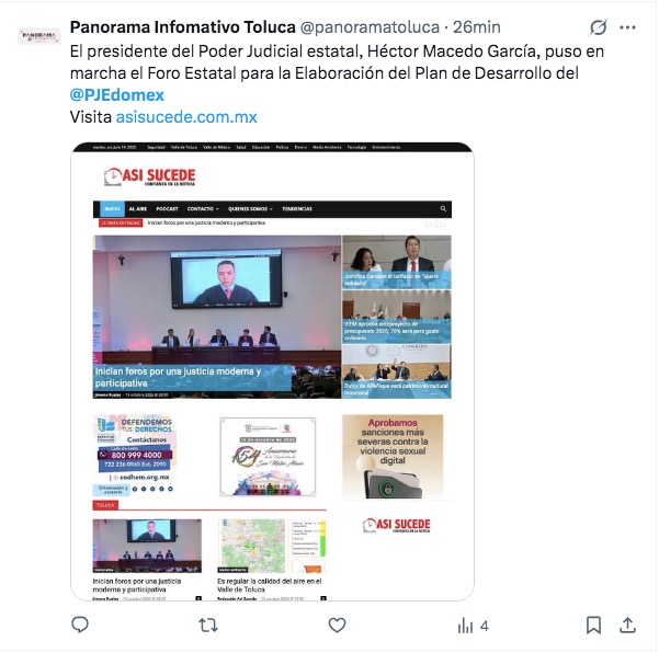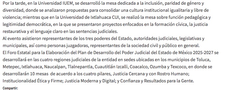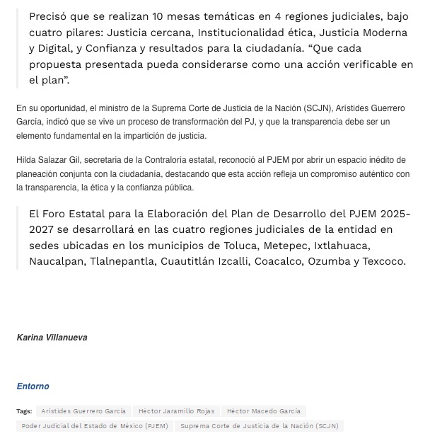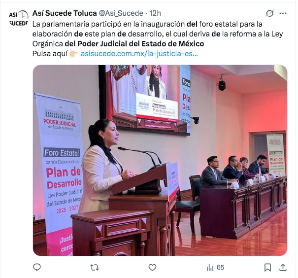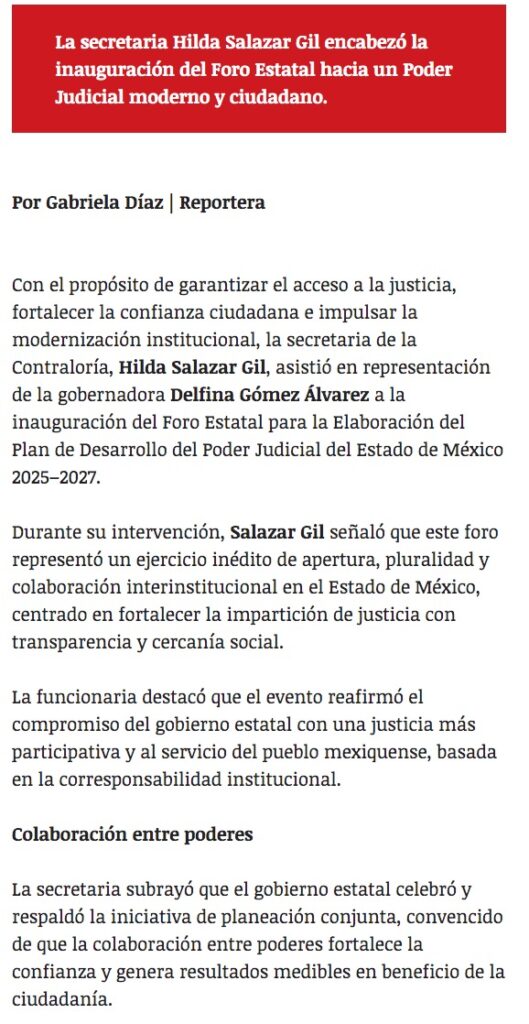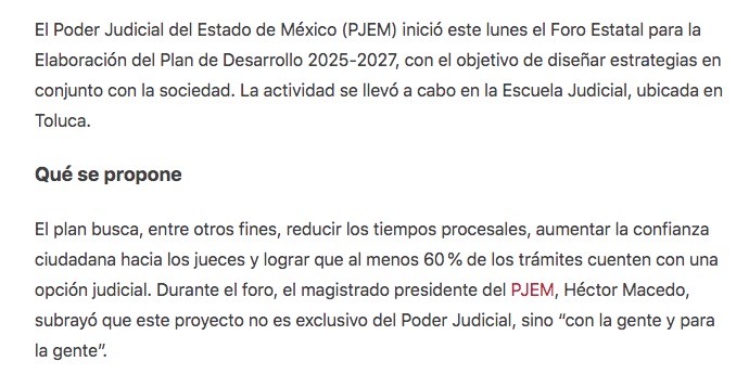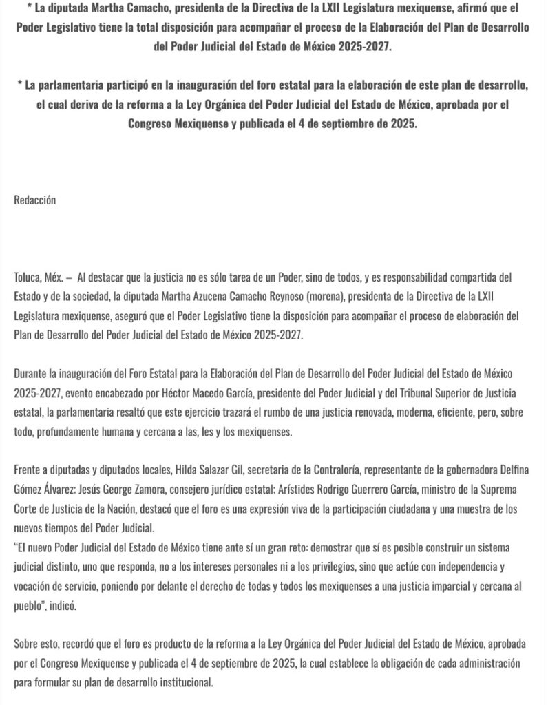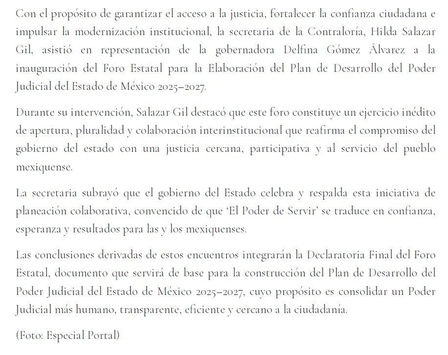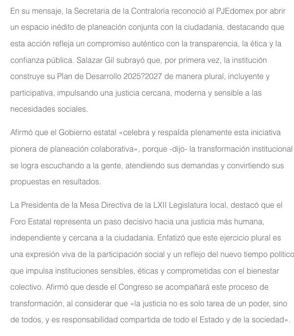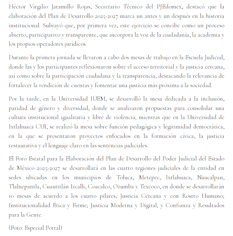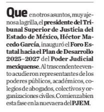 - https://informativomexiquense.com/edomex/el-poder-judicial-inaugura-el-foro-estatal-para-la-elaboracion-del-plan-de-desarrollo-2025-2027?fbclid=IwVERDUANajqxleHRuA2FlbQIxMAABHrDta6ui03siv0GTbk5FAzdBdIN0JMYsOTe7W2m7mEIP45qieBBGG0jp8e9I_aem_4nJX247uGVBq-_mUHxYZPg