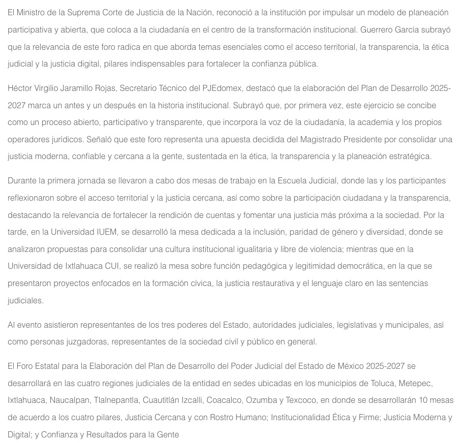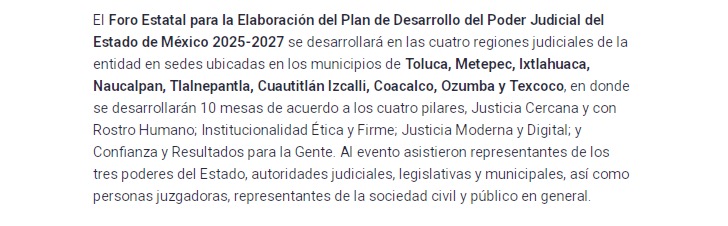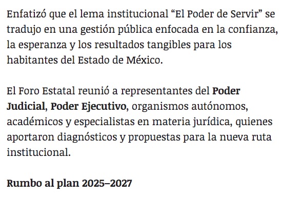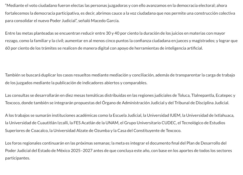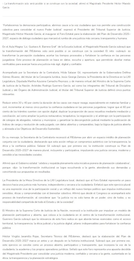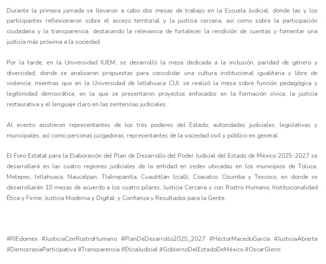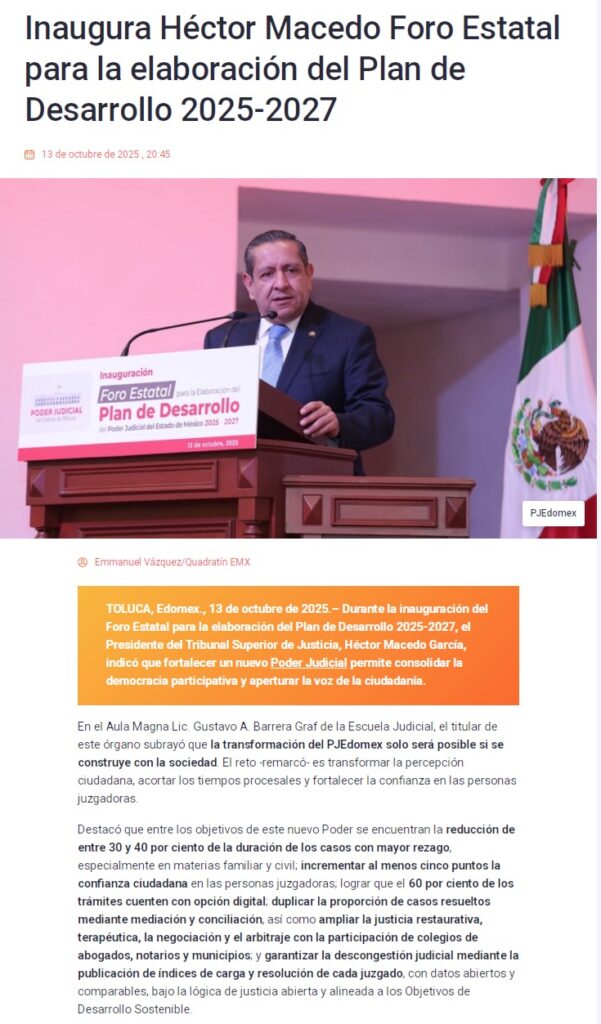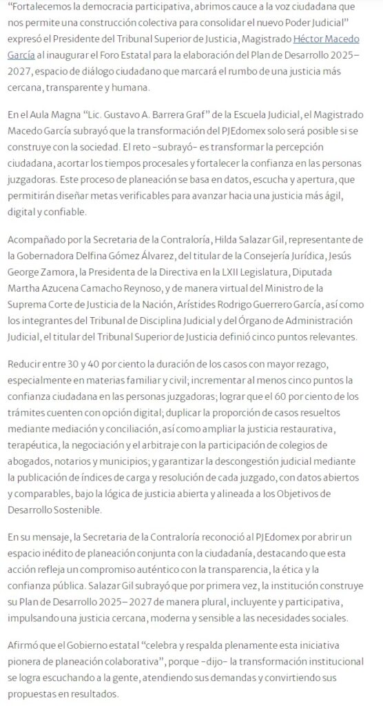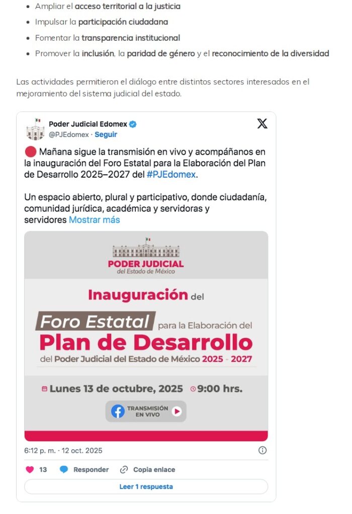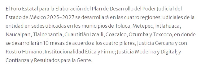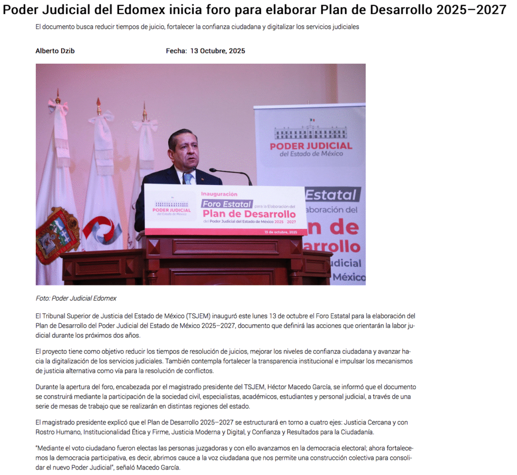 - https://edomexahora.com/2025/10/13/%F0%9F%8F%9B%EF%B8%8F-poder-judicial-del-edomex-impulsa-foro-para-crear-su-nuevo-plan-de-desarrollo-2025-2027/
