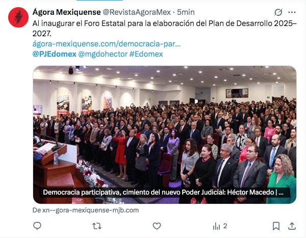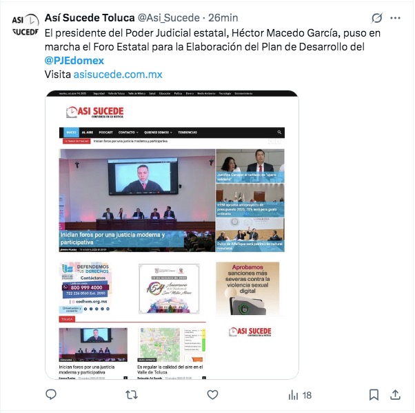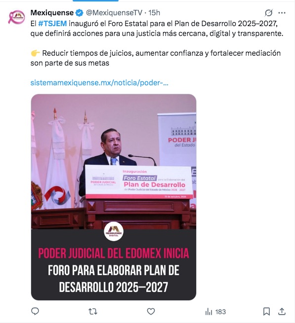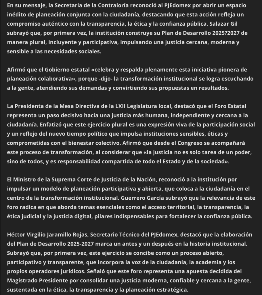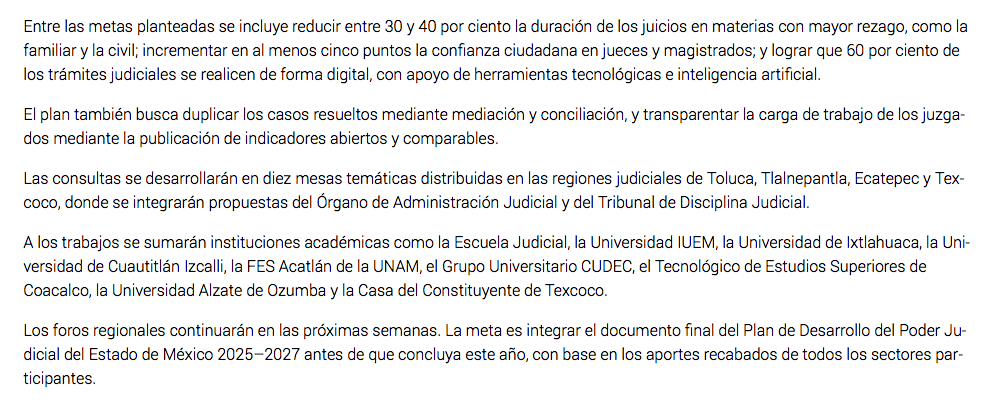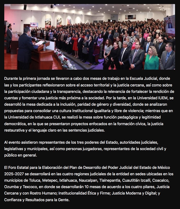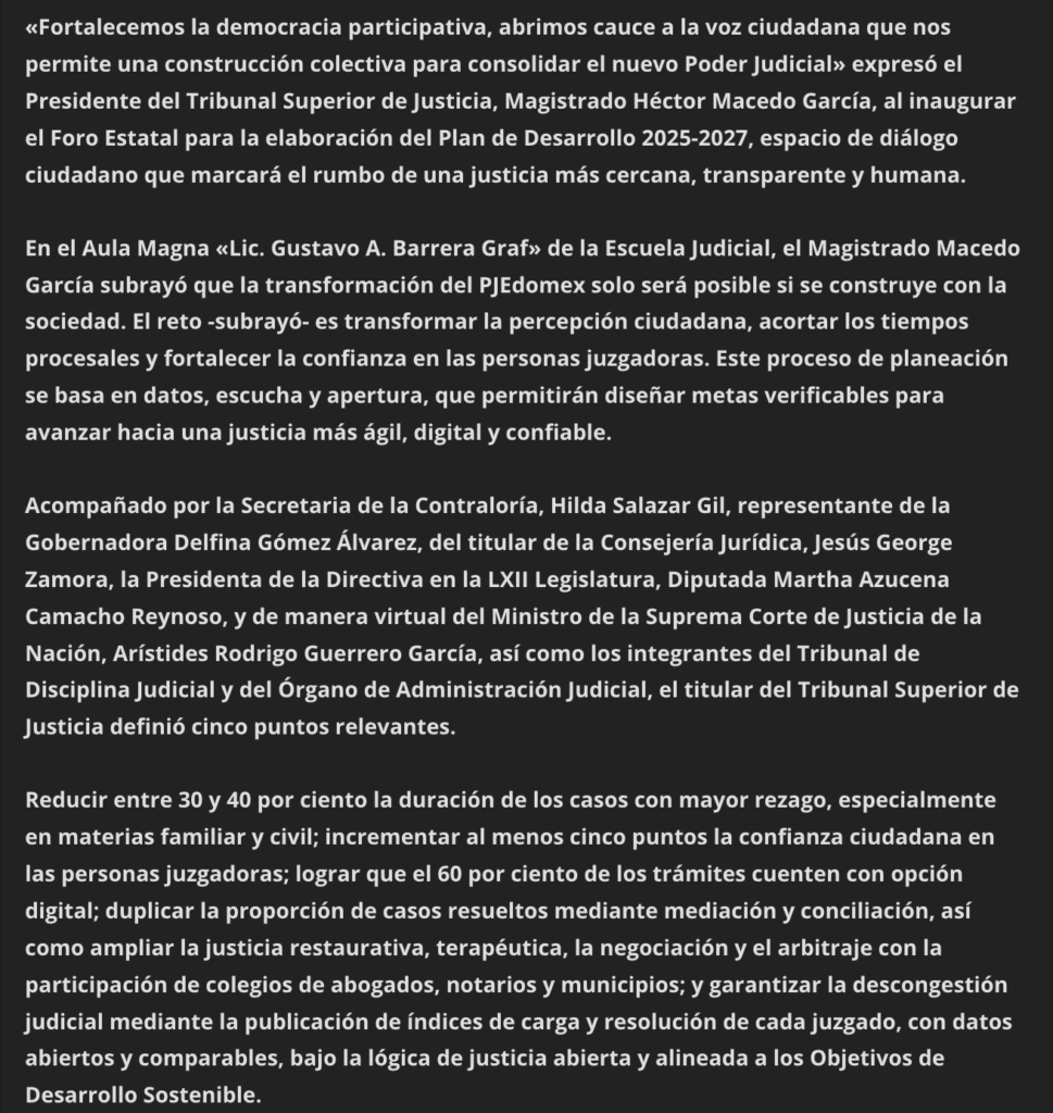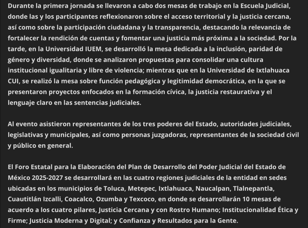 - https://edomexahora.com/2025/10/13/%F0%9F%8F%9B%EF%B8%8F-poder-judicial-del-edomex-impulsa-foro-para-crear-su-nuevo-plan-de-desarrollo-2025-2027/