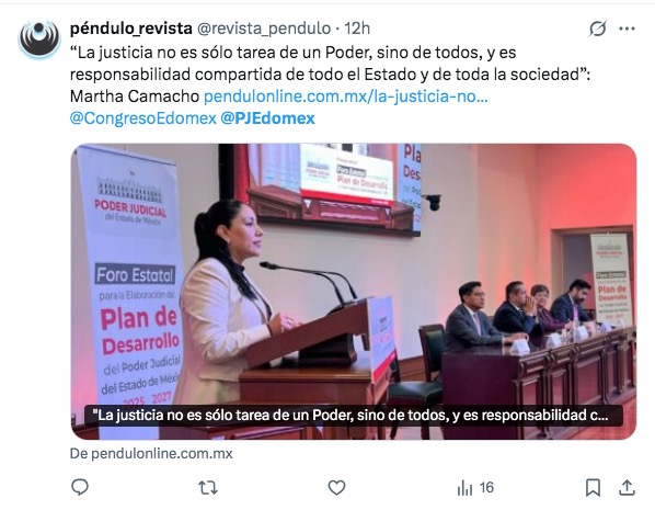 - https://pendulonline.com.mx/la-justicia-no-es-solo-tarea-de-un-poder-sino-de-todos-y-es-responsabilidad-compartida-de-todo-el-estado-y-de-toda-la-sociedad-martha-camacho/